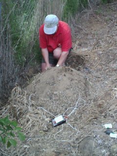 Unusual situation checking a tree next to a river bank for a possible termite nest